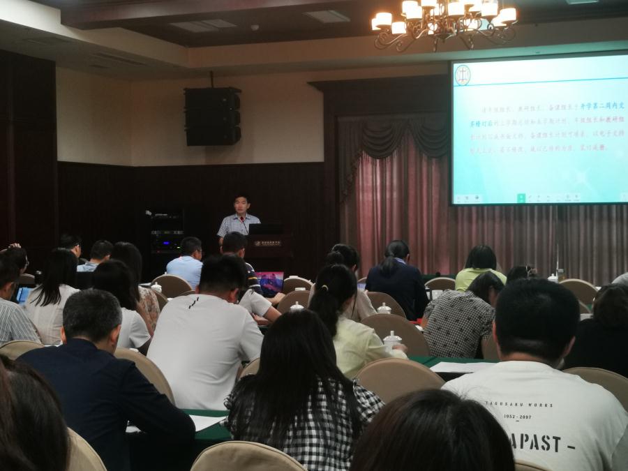 接着,课程与教学处陈国华副主任作2021-2022学年度上期课程教学计划解读,陈主任就新学期的课程建设与教学实施中的工作重点作了部署。德育处王敏蓉主任就2021-2022学年度上期德育工作计划作解读,让与会老师明晰了新学期德育工作的重点和任务。教科室文传福主任对2021-2022学年度上期教育科研计划作解读,文主任就推进“基于课程标准的教学评一致性实践研究”课题研究工作做了部署,并鼓励老师积极参与到教育科研中来,用课题研究引领教师专业发展。学校党委副书记、行政办主任刘尧树书记就学校人事、工资、宣传、文化建设等相关工作做出安排。