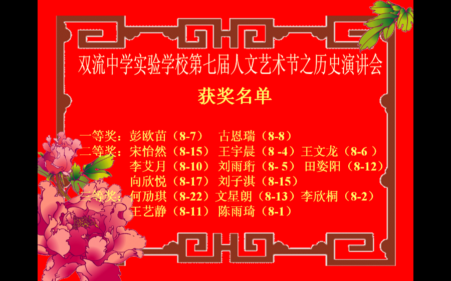 双中实验校第七届人文艺术节历史演讲会获奖名单