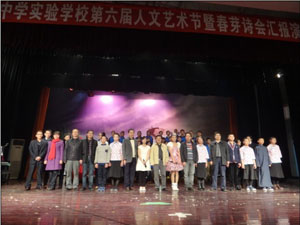 本届诗会由学校语文组联合艺术组、信息中心等部门共同承办,来自七八年级学生以一支激情飞扬的舞蹈拉开了本届诗会的序幕。参加演出的节目共15个,可谓内容丰富而形式多样。在节目过程中,校领导为在本届人文艺术节中获奖的班级和个人颁发了奖项,七年级语文备课组老师集体朗诵《沁园春·雪》一度把诗会现场带到高潮,全场掌声雷动,欢呼声此起彼伏。在诗会结束之后,校领导与参演人员共同合影留念。