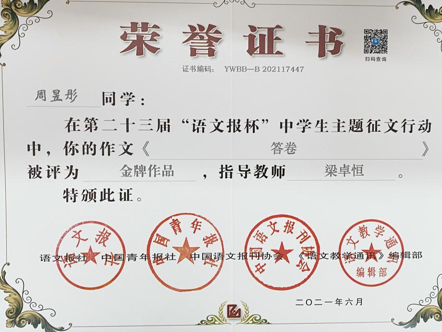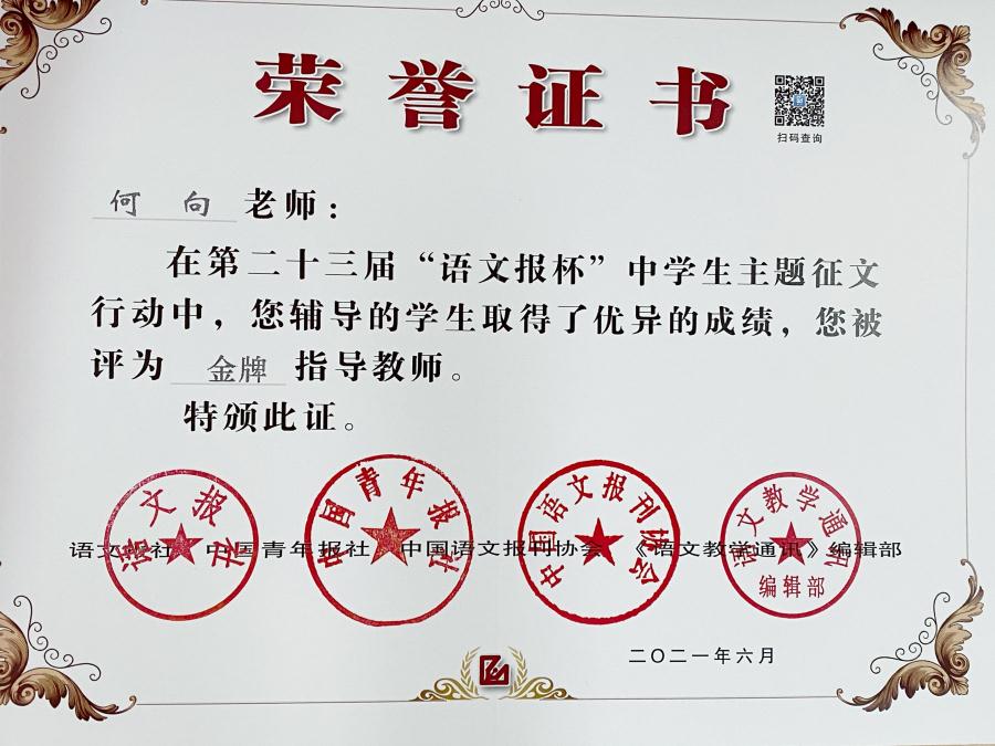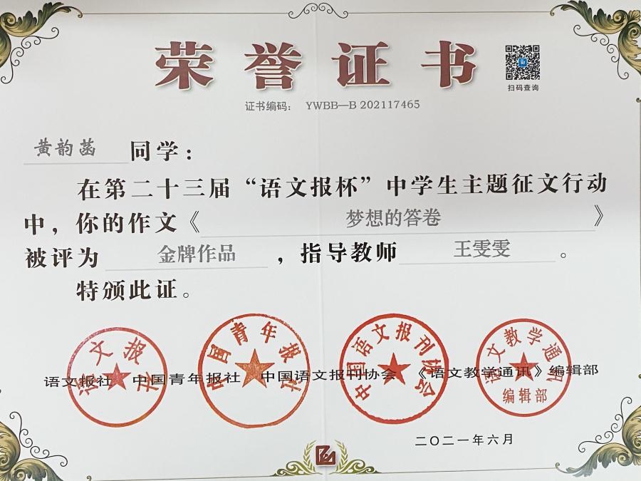 交答卷·展风采——我校在“语文报杯全国中学生主题征文”活动中创佳绩