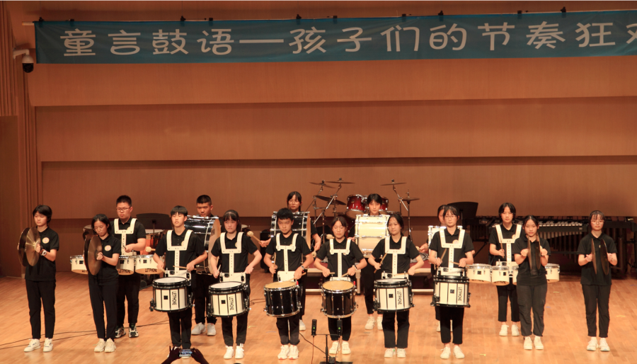 2021年10月5日晚,一场名为“童言鼓语-孩子们的节奏狂欢”音乐会在城市音乐厅小音乐厅举行。双中实验校行进打击乐团作为特邀代表参加演出,并以激情的鼓点,欢快的节奏,新颖的演奏方式赢得了全场观众热烈的掌声。