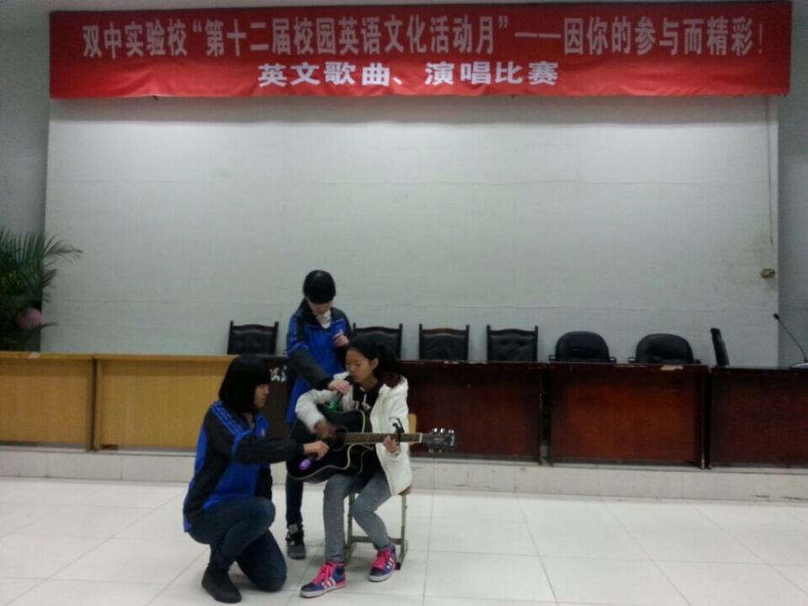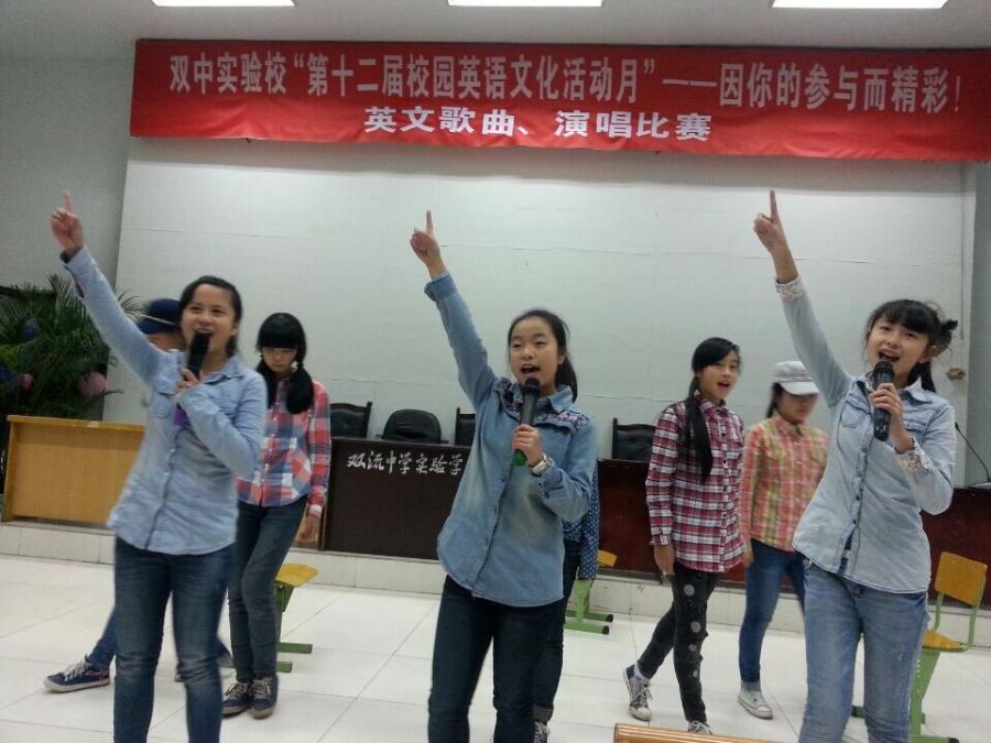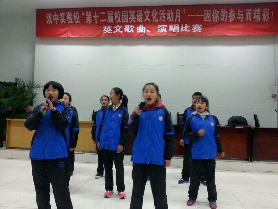 2014年11月24日下午,我校7年级同学在学术演讲厅参加了第十二届英语活动月英语歌比赛,来自七年级各班的同学们八仙过海各显神通,载歌载舞,将比赛的气氛推向高潮。现场掌声和欢呼声此起彼伏,同学们都为小歌手们的精彩表现竖起了大拇指。(英语组 杨四维)
