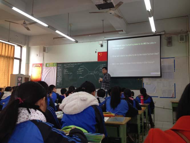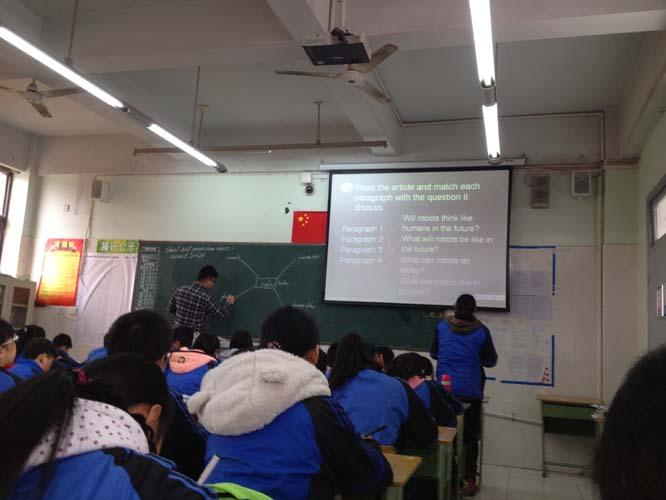 2014年11月20日上午第四节课,我校英语组杨四维老师在八年级十九班上了一堂“人人献课”公开课。课题为八年级上册Unit7 Will people have robots? SectionB 2a-2e 课型为阅读课。课堂上,杨老师利用精心制作的课件,向同学们展示并且讨论了各种形状和功能的机器人,提起同学们兴趣的同时为阅读搭建“脚手架”,扫除障碍。课堂展现了完整的阅读步骤和丰富的阅读策略,亮点频出。最后以同学们讨论是否支持JamesWhite的“机器人不能进行思考”收尾,同学们各抒己见,有的同学则表示要敢于梦想,挑战一切不可能,这种积极的生活态度是文章想要表达的,也是值得我们去学习的。