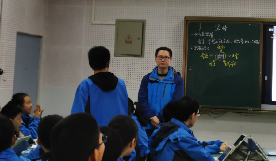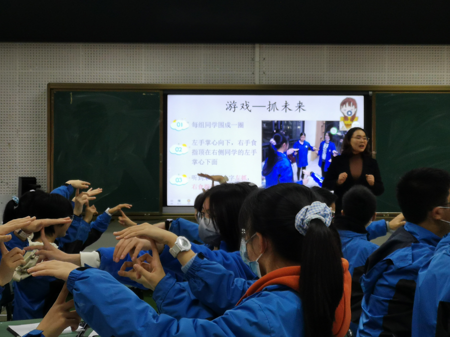 这两次的游戏在同学心中留下了深深的思考,他们发现,一件事情如果要坚持下去,需要明确的目标,需要同伴或竞争对手的激励……这一游戏将整堂课的气氛推向高潮,让同学们真正明白坚持的意义与价值,在切身体会中把坚持落到实处,并运用在班级管理中。