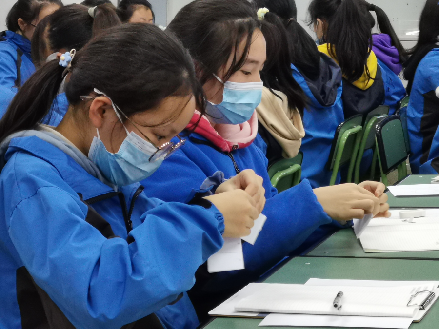 为了让同学们更加直观地认识生涯规划,黄老师又开展了撕纸条的活动,让同学们充分认识到真正能学习的时间少之又少,让同学在活动中自由发挥想象力,简单认识自己的人生。最后黄老师让同学们绘制“我的中学生活蓝图”,让同学们自己动笔书写5个希望在中学阶段收获的果实,并思考时间的可能性大小,认真执行计划。