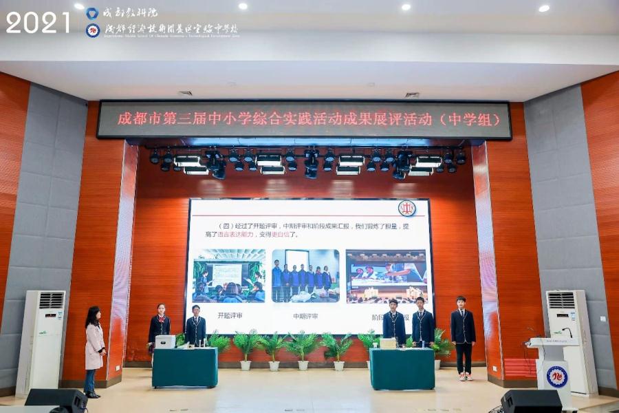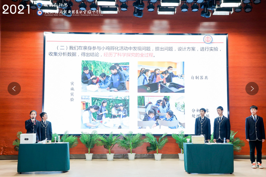 为贯彻落实《教育部中小学综合实践活动指导纲要》以及《成都市中小学综合实践活动课程实施方案》精神,引领学校按照国家要求规范落实综合实践活动课程,展示各学校综合实践活动成果,成都市教育科学研究院于2021年12月3日主办了成都市第三届中小学综合实践活动成果展评活动,本次现场展评活动中学组共有24个代表队参赛,各代表队的成果展示准备充分,内容丰富,形式多样,精彩纷呈。由成都双流中学实验学校陈晓红、王伟老师指导,陈晓红老师现场执教,成都双流中学实验学校2022届19班陈天宇、2022届18班熊思璐、2023届9班胡品喆、2023届14班赵梓浩、2023届14班李宇轩等同学汇报的课题《影响小鸡胚胎发育的因素探究》得到了专家评委的高度认可,荣获特等奖第一名。
