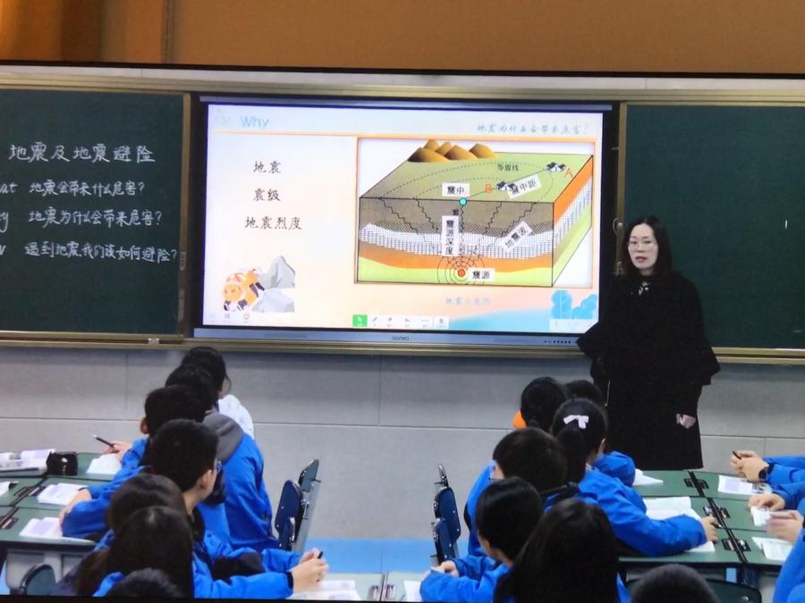 钟英老师《地震与地震避险》该教学案例依据《四川省义务教育地方课程指导纲要(2021年版)》和2021年最新修订的地方课程教材《生命·生态·安全》的内容,选自八年级上册第二单元《防灾减灾》第五课,围绕课程指导纲要“指导防灾减灾的重要性”“初步掌握应对地震、滑坡、泥石流、洪水、雷暴、干旱、酷暑等地质灾害和气象灾害的基本方法”,同时结合我校综合实践活动课的开展,学生已经具备一定的实践调查、问题分析能力,能通过小组合作学习完成课题的初步研究,并能以多种形式表现研究成果。最后课堂上通过图文分析、问卷调查、情景模拟、小组合作、实践调查、学校演练等多种形式,充分发挥出学生主体性、适宜性,培养学生综合思维和地理实践力,教学过程通过3W,即WHAT、WHY、HOW三个环节优化了课程育人教学设计,体现跨学科知识的融合,具有较强的针对性、创新性、示范性和可推广性。(图文来自地理组 撰稿:丁翔 审稿:钟英)