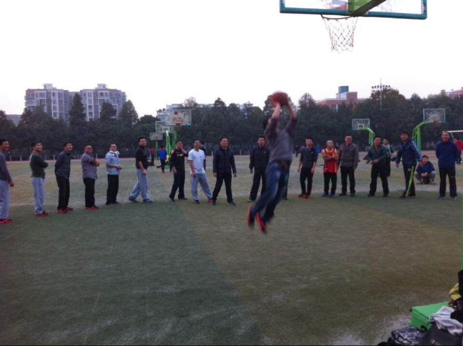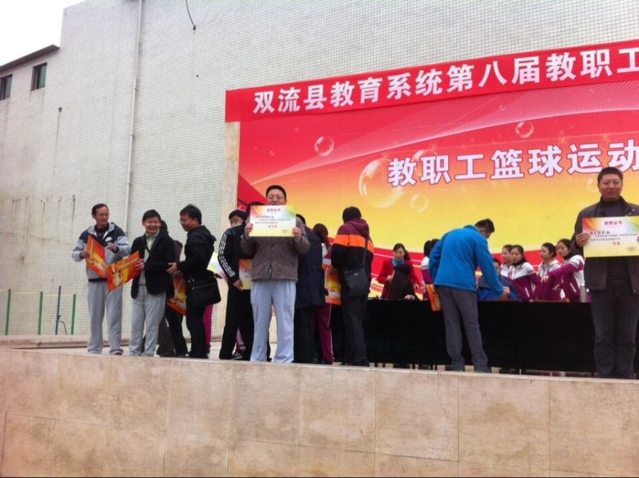 因大雨被迫延迟一个月之久的双流县2014年教职工篮球运动会,终于在12月6日再次召开,比赛项目是20分钟投篮。虽然天气寒冷,现场却异常火热。比赛还没开始,各校球队便已提前展开了热身赛。我校队员因平日工作繁忙,训练时间极少,此时更是争分夺秒地进行现场集训。队员们一个个精神抖擞,摩拳擦掌,大伙儿相互激励,相互喝彩,也相互较量!九点半左右,随着主席台一声哨响,比赛正式开始,八支球队同场竞技。我校首位队员一记漂亮的出手,一击而中,“好!”大家伙大吼一声,这无异于给全队吃了颗定心丸。紧接着,队员们以自己最快的速度一个接一个地传下去。“好!”“好!!”“好!!!”一阵阵叫好声顿时响彻云霄。最终,我校球队以投进275个球的好成绩取得初中组第一名,荣获特等奖!这是我们整支球队精诚团结的结果,也是我们的队员努力拼搏的结果。他们以精彩的表现为“双中实验、精彩无限”这八个字作了最好的诠释!让我们再次为他们喝彩,让我们一起来欣赏那些难忘的瞬间: