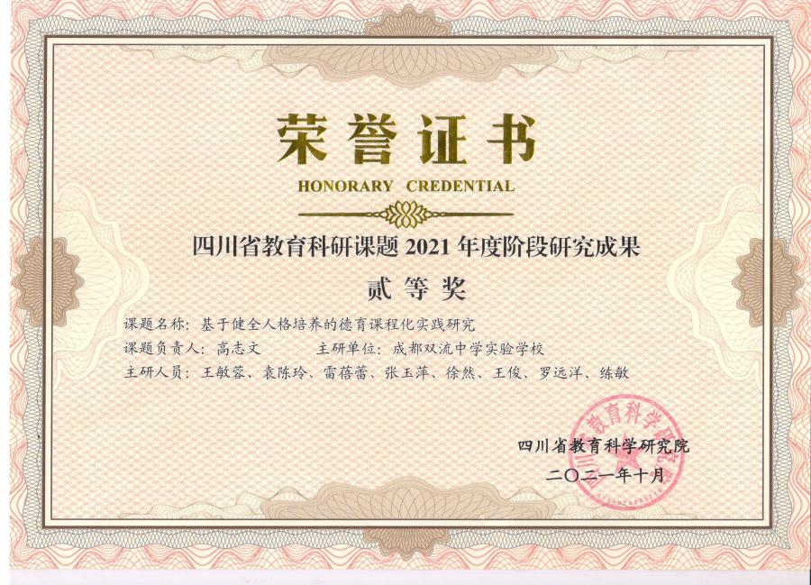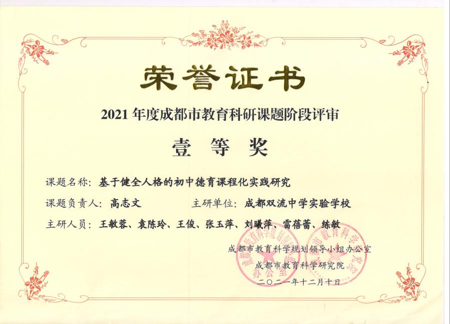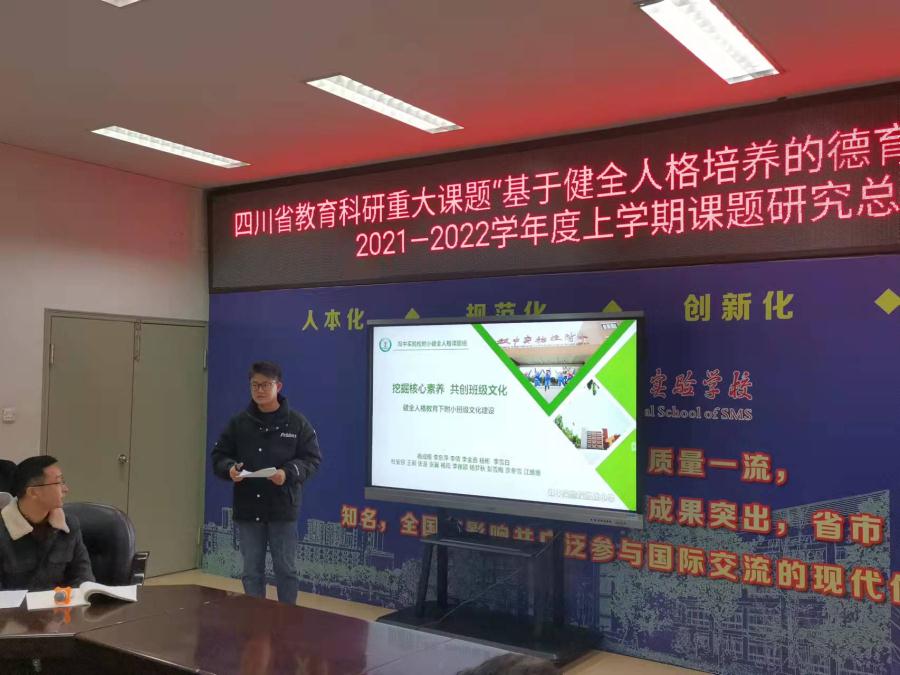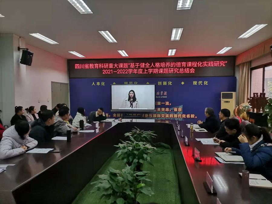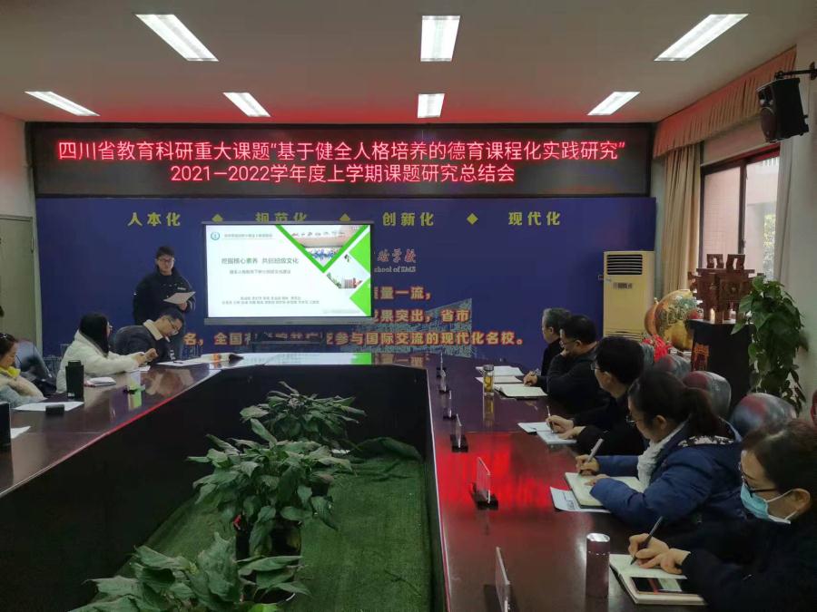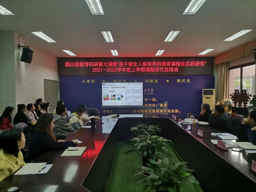 为在学校教育实践中落实立德树人根本任务,增强学校德育实效,提升学校育人品质,进一步推进学校健全人格德育课题的研究和有效实施,成都双流中学实验学校教育集团于2022年1月15日召开了2021--2022学年度上期《基于健全人格培养的德育课程化实践研究》课题组工作总结会。本课题为四川省教育科研重大课题,在本学期课题研究阶段性评审中荣获省级二等奖,成都市级一等奖。