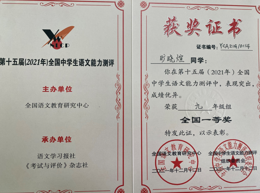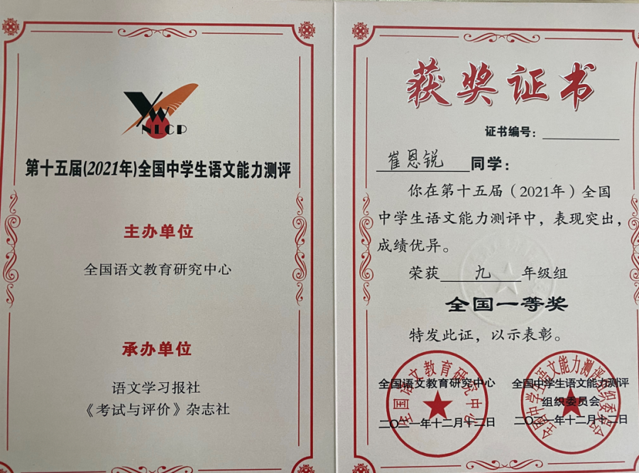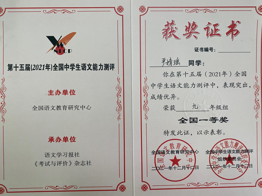 语文是“桃之夭夭,灼灼其华”的《诗经》,是魂兮归来的《楚辞》,是忍辱负重的《史记》,是千古绝唱的《离骚》……语文是美丽的,它使我们开阔了眼界,提升了境界。为培养学生热爱祖国语言文字的感情,丰富校园文化气氛,提高学生的语文素养,增进学生学习语文的兴趣,我校于2021年11月18日组织学生参加了“第十五届全国中学生语文能力竞赛”,并取得累累硕果。其中,15名同学获得国家级一等奖,46名同学获得国家级二等奖,91名同学获得国家级三等奖,31名同学获得省级一等奖,91名同学获得省级二等奖,183名同学获得省级三等奖。
