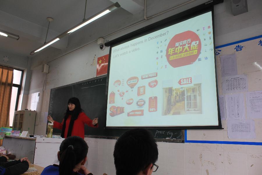 This class was an Aural-Oral Lesson. It began with a video about a phenomenon in China--great sales in clothes stores and on the Internet in December. It ended up with a role-play between a customer and a shop assistant. In this class, Chen Qi made full use of the Situational Teaching Method to get her students actively to take part in all activities. The class was fun and living, the students have got they should learn. The photos are as follows: