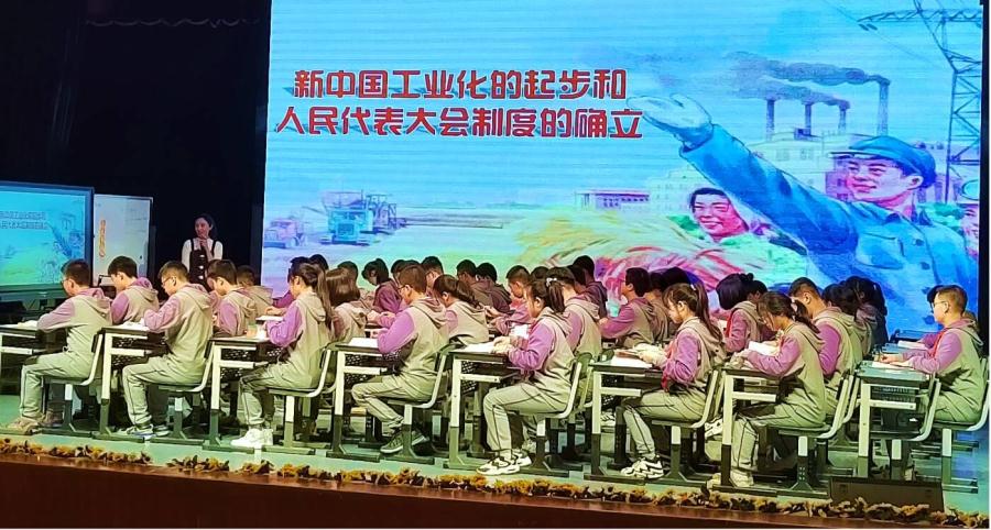 此次“蜀都杯”以“落实‘四史’教育,推进课程革新”为主题,晋老师上课的课题是《工业化的起步和人民代表大会制度的确立》。晋老师以当今流量人物和“一五“建设先辈的照片为导入,再过渡到这些鲜为人知的人物却是新中国的开拓者,进而讲述了第一个五年计划时期鞍钢“无名英雄”——胡兆森的故事,由此展开上世纪五十年代新中国工业化的起步和人民代表大会制度的确立,以丰富多样的史料营造教学情境,帮助学生感知和探究历史,最后以群像的方式呈现 共和国的“无名“建设者们在自己的工作岗位上辛勤付出,与学生共同探讨”吾运与国运“的关系,让家国情怀的培育落地有声。