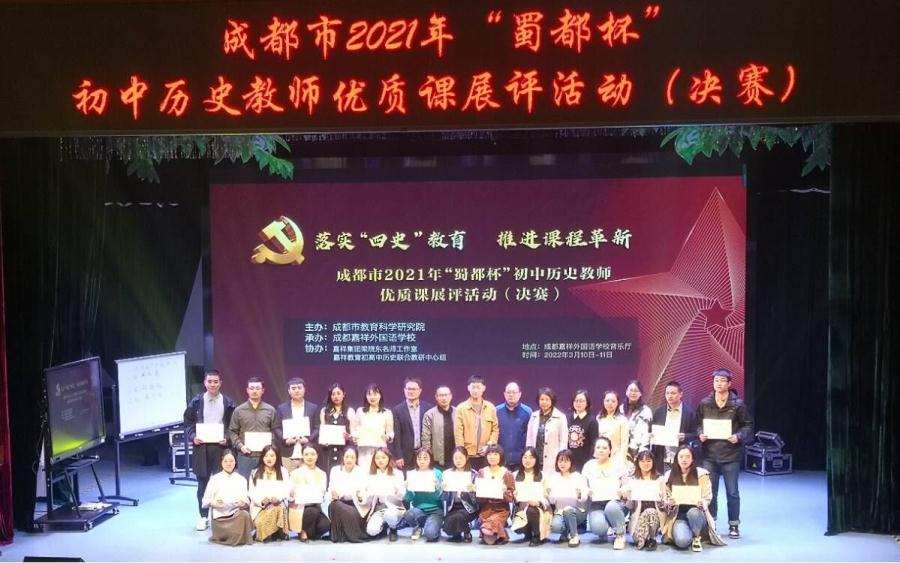 2022年3月11日,我校历史组晋云萍老师在成都市教育科学研究院主办的“2021年成都市蜀都杯初中历史教师优质课展评活动(决赛)”的激烈角逐中获特等奖。