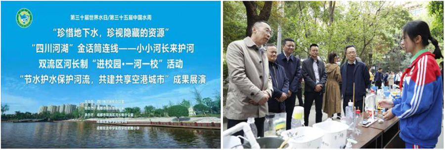 本次活动采用现场活动与新华社云直播、四川河湖视频号和成都水务视频号直播的多种播放形式。出席本次活动现场的嘉宾有四川省河湖保护和监管事务中心党委副书记董大志,四川省河湖保护和监管事务中心崔西岭,成都市河湖保护和智慧水务中心副主任胡鹏,成都市河湖保护和智慧水务中心宣传科科长曹梦迎,双流区河长制办公室主任、水务局局长朱文明,双流区教育局局长陈廷刚,双流区河长制办公室副主任、副局级领导刘崇义,双流中学实验学校校长高志文、副校长罗晓章,双流中学实验学校附属小学副校长杨成根等相关领导。