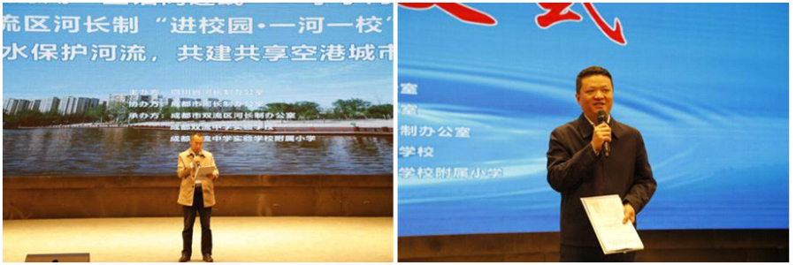 本次小河长活动,双流区在小小河长基础上,提出一河一校新举措,双流区水务局局长、双流区河长办主任朱文明在开幕式上详细介绍了由一所学校“承包”一条河流(流域),组织学生开展该条河流(流域)治理相关课题研究的“一河一校”新机制,并由现场领导嘉宾为双流中学实验学校、棠湖中学怡心实验学校、双流区永安小学、双流区九江初级中学、双流区黄龙溪学校、双流区彭镇小学、四川大学西航港实验小学、双流区公兴初级中学、双流区金桥小学、双流区黄水小学、双流区公兴小学、双流区西航港第二初级中学这十二所护河校授牌。