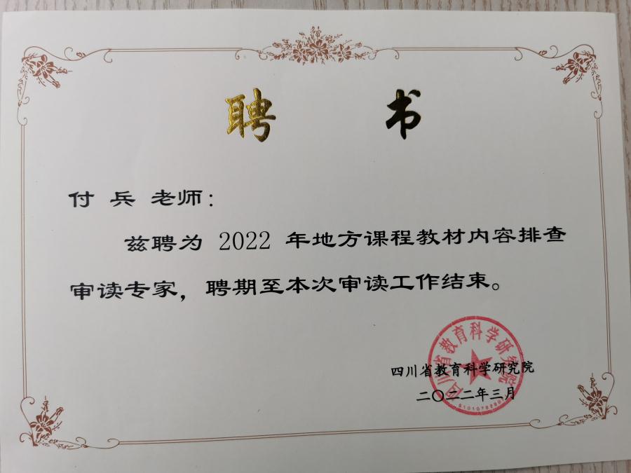 祝贺我校付兵老师被聘为2022年地方课程教材内容排查审读专家