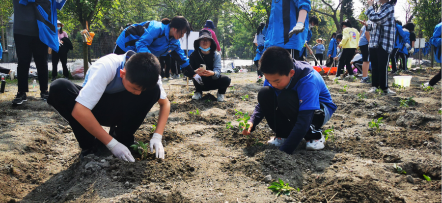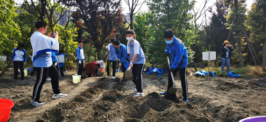 到达种植基地过后,同学们迫不及待的冲进菜地,撸起袖子加油干。根据蔬菜种植流程,老师们耐心地对学生们进行了种植步骤的讲解,即领工具——除草——锄地——领肥、撒肥——敲细土块并平地——打窝——领种苗种子——栽苗或播种——浇水——清理。在熟悉种植步骤后,老师们进行了耐心的种植示范。接着同学们按照出发前划分的六个小组,根据所负责的不同的蔬菜品种以及种地区域开始了种植工作。种植过程中,同学们齐心合力,纵然汗流浃背,也不减一分种植的热情。种植完成后,看着自己的劳动成果,大家都有一种说不出的激动和兴奋。