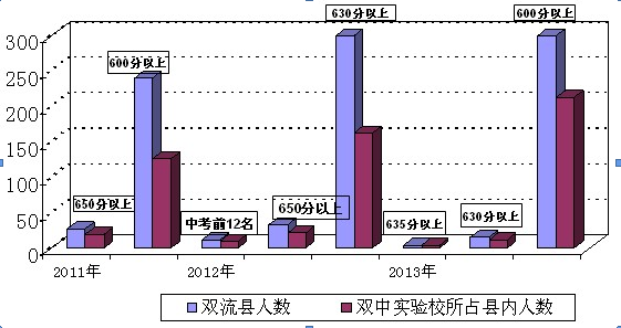 2011—2013年中考双流县与我校各分数段比较情况