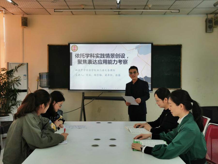 在本次比赛中,该团队在通过前期内部讨论定题、成员分工合作展开研读等活动后,依托全组力量,调动集体智慧,集中研讨,多次调整思路,修正设计文稿,最终以“语言运用题”为切口,依托学科实践情景创设,聚焦学生语言表达应用能力的考察。
