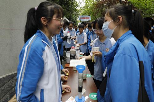 点燃活动激情的第一道炬火,由成都市双流区立格实验学校高志文校长高举,他以简明生动的语言介绍托里拆利实验活动的科学原理,同时操作实验设备,在全校师生的惊叹连连中,蓝色的水柱直冲云天,这也预示着我们立格学子必将青出于蓝而胜于蓝,更上一层楼!