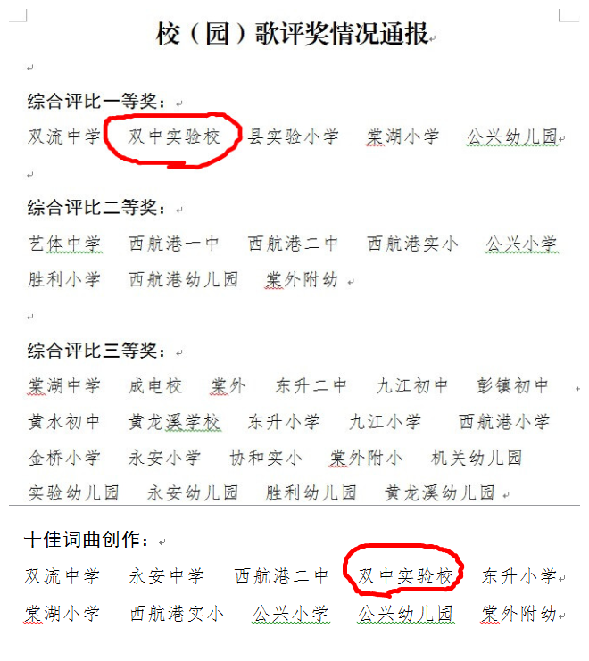 我校园原创合唱歌曲获县校(园)歌评比一等奖