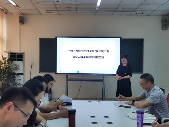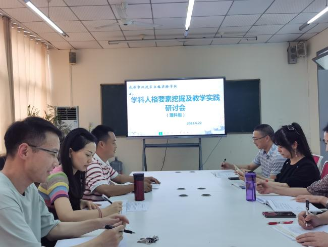 2022年6月22日下午第三节,四川省教育科研重大课题《基于健全人格培养的德育课程化实践研究》,理科组学科人格要素挖掘及教学实践研讨会在名师工作室进行。理科组6个学科(数学、物理、化学、生物、体育、信息技术)教研组长、研发小组成员、阶段研究人员以及每个组献课的教师参加了会议,会议由理科组长罗远洋老师主持,总课题组长袁程玲与会指导。