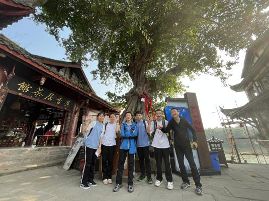 上午九点钟,经过1个小时的车程踩点师生陆续到达景区停车场,跨学科课题组成员交代好注意事项后各班学生在指导教师的带领下,前往本次外出踩点活动的地点——黄龙溪古镇。进入卡口时,踩点学生出示提前打印好的“通行证”,快速有效的进入了景区。