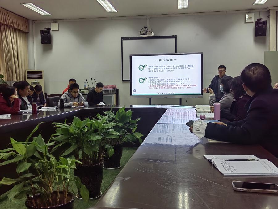 首先,语文组周继刚老师分享了健全人格学科课例——《植树的牧羊人》。周老师作为本学期课题组阶段性研究人员初次参与课题研究和实践,他在认真研读课题组《健全人格教育校本课程纲要》、《基于健全人格培养的学科(人文学科)课程德育实践研究研究方案》、《基于健全人格培养的德育课程化实践研究》的阶段研究报告的基础上,全面了解健全人格课题研究的理论依据、内容和目标,确定了实践课堂健全人格教育的思路和方法,做好了备课前准备工作,决定通过《植树的牧羊人》一课来引导学生理解慷慨无私和默默奉献的人格品质;确定了导入——预习检测,整体感知——梳理情节,读懂故事——分析人物,读懂牧羊人——探究主旨,感悟人生——课堂小结的课堂教学思路;在语文教研组集体研讨不断完善和优化课堂教学实施,让课堂教学更贴近学生的生活和学习实际,更加高效地实施健全人格课堂教育;并通过学生的反馈对课堂教学实效进行了反思。周老师通过把课堂人物形象拓展到学生真实生活中,引导学生得出“坚持创造奇迹”的结论,让学生学会“在学习中学会坚持”。