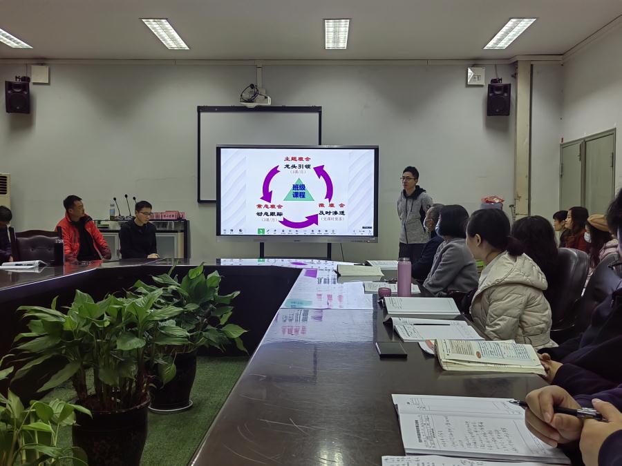 随后,班级管理子课题徐然老师分享了班级管理课题研究的过程和阶段性研究成果。班级管理子课题组通过坚持不懈的探究和实践,确定了连续性、框架式和螺旋型的序列化班会课程研究思路;研发了主题班会课序列化课程内容;编制了主题班会课典型课例集;形成了以主题班会为龙头引领、常态班会为动态实施、微班会为及时渗透的实施方式和策略,提升了各班班会课实效,增强了班级管理育人品质。