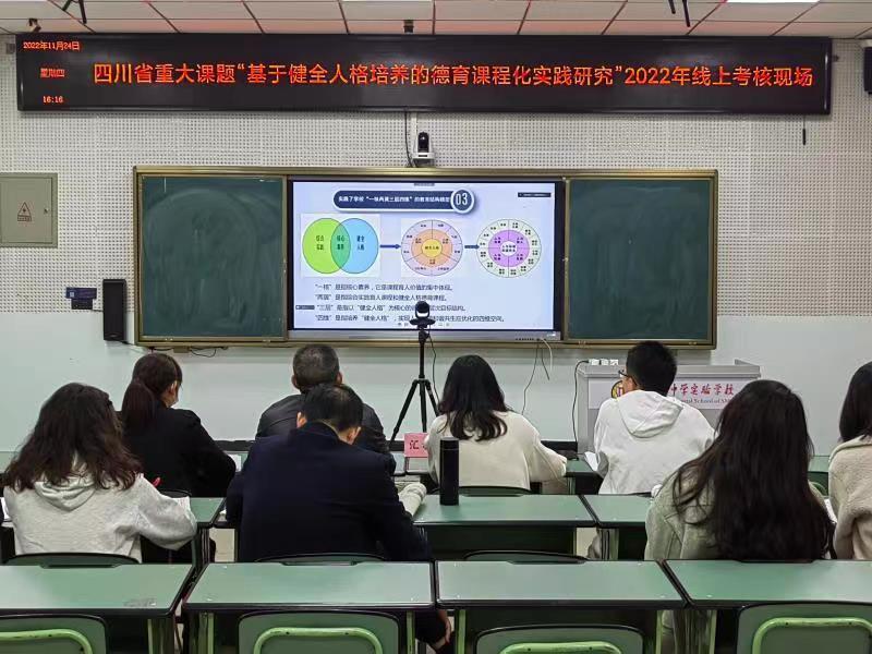 为推动我校教育科研规划课题扎实、规范、科学地开展研究,不断提高教育科研成果质量,根据《成都市教育局关于开展2022年度成都市教育科研规划课题阶段评审的通知(成教科规办【2022】9号)》要求,我校四川省2019年度重大科研课题《基于健全人格的初中德育课程化实践研究》课题组参加了本年度课题阶段评审工作。2022年12月24日,成都市2022年度教育科研课题阶段评审线上答辩会如期举行。我校课题组组长袁陈玲老师代表课题组做研究工作答辩,德育处王敏蓉主任、课题组部分参研老师参与答辩。