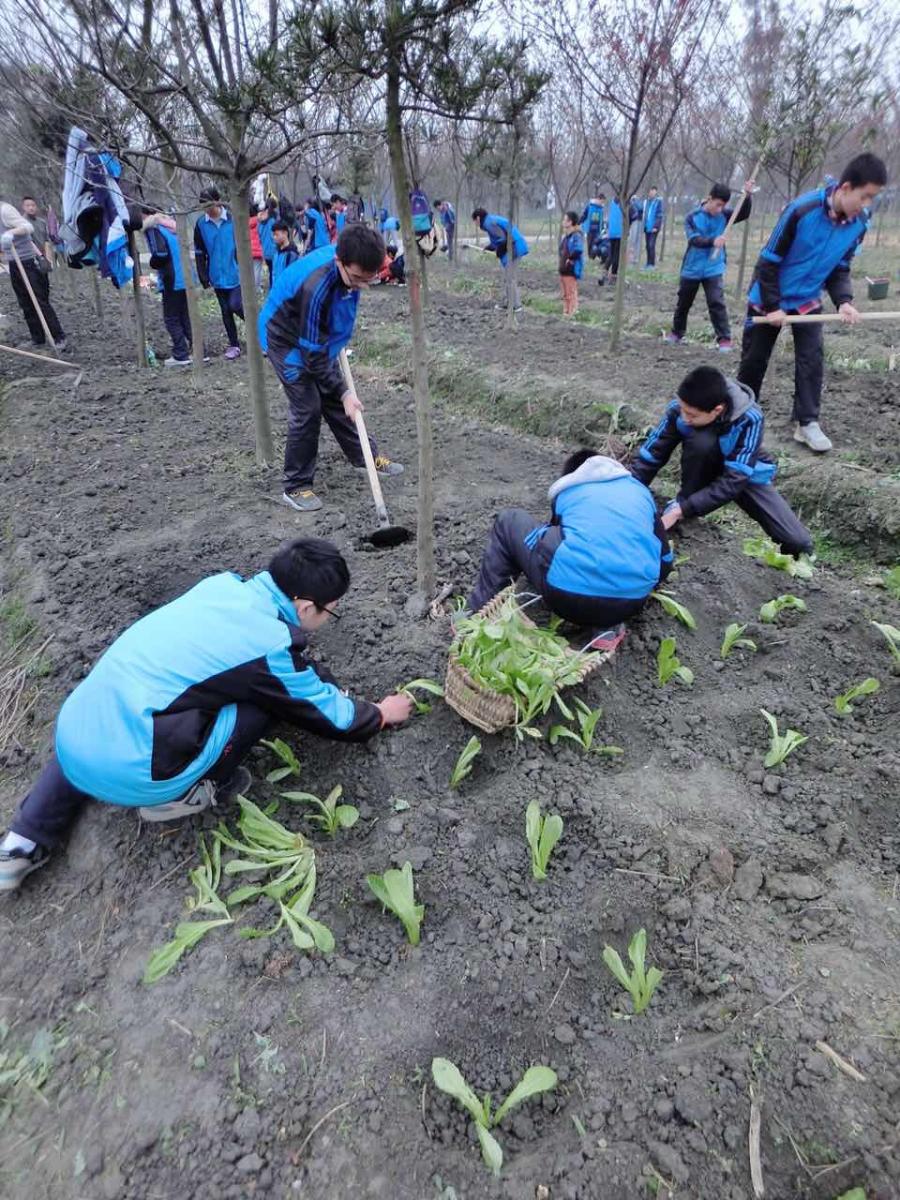 锄草、翻地平土、量度行距、拉绳打窝、栽种、施肥、培土、浇水各个环节紧锣密鼓有条不紊的进行着,时间不知不觉就到了五点钟,同学们看着自己亲手栽种的莲花白、莴笋等蔬菜很有成就感(有学生发出了这样的感受:大家一脸疲惫的坐在地上,此时闻到了从空气中弥漫开来的泥土混合着蔬菜的味道,那种感觉无法形容,也许就是一种满足吧)。经过半天的劳动,衣服弄脏了,手粗糙了,茧子和水泡也附上了,但他们并没有一句怨言,希望通过这次实践活动,他们能逐步养成良好的劳动习惯,培养热爱劳动的优良品质,学会珍惜和分享劳动成果,学会团结协作和吃苦耐劳,在成长的道路上变得更加坚强。(李英华)