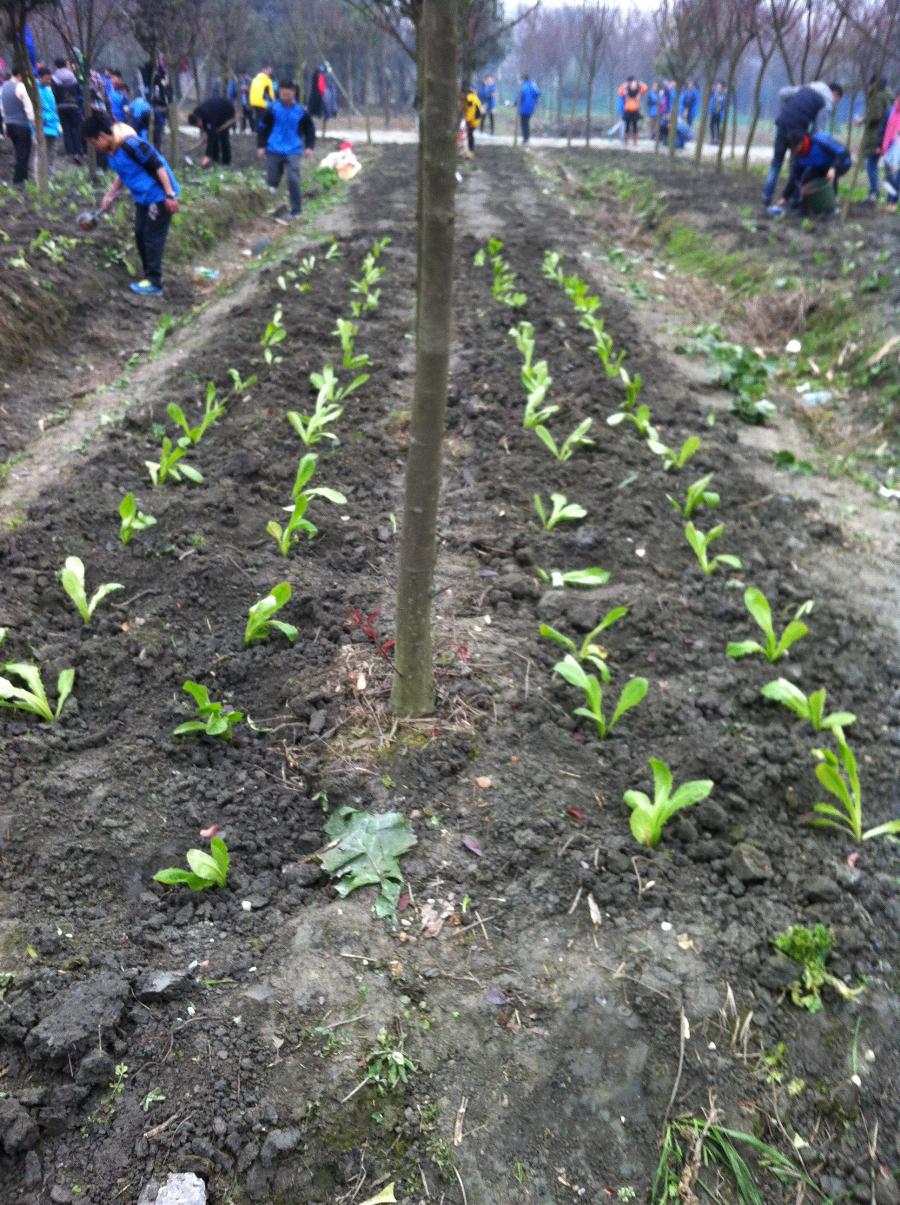 1月5号至1月7号三天下午的1:30~5:30,我校八年级共22个班学生分三批依次到彭镇基地进行了蔬菜种植活动,每个班分六个小组,分别种植了莲花白、莴笋、瓢儿白、包心芥菜、菠菜和生菜。从锄草、翻地平土、量度行距、打窝到直播移栽、培土浇水整个种植活动都是由学生在专业技术人员的指导下完成的。
