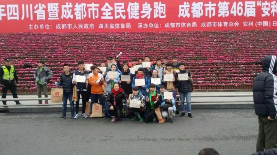 “啪!”8点30分,随着一声响,穿着运动服的市民们一下子都像箭一样冲了出去,2015年四川省暨成都市全民健身跑成都市元旦越野赛,在天府广场,正式开始。我校共7名田径队员参加了本次比赛。