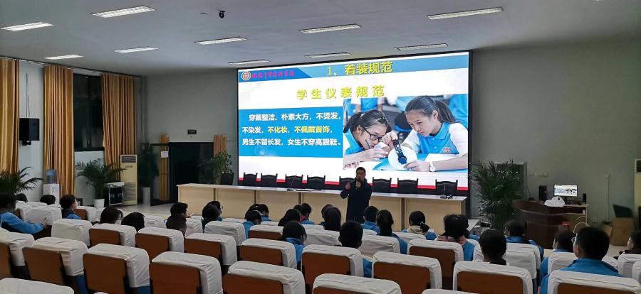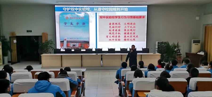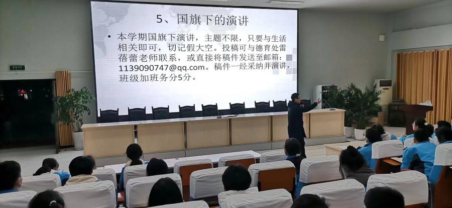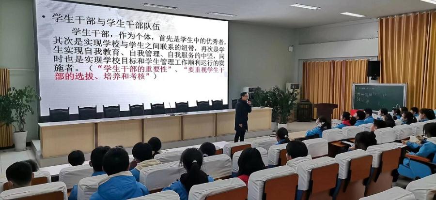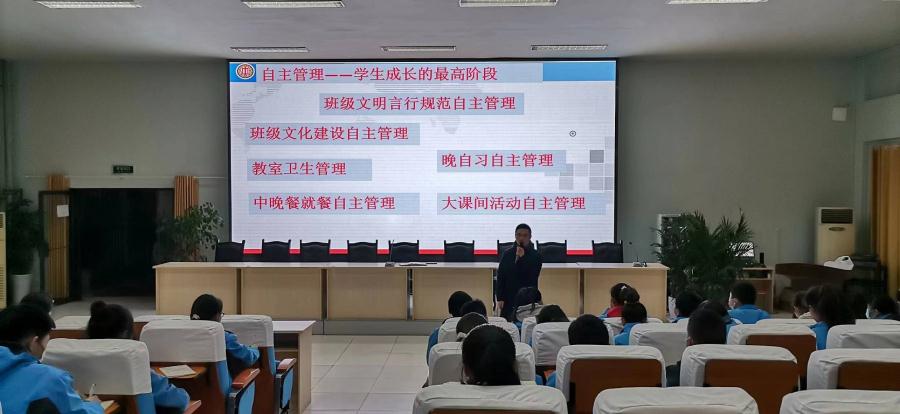 随后,王俊老师就学校学生文明言行标准和校园日常管理要求向学生干部们进行了详细的讲解,让他们明确了解了自己在班级日常管理中的责任。同时,王俊老师要求各班学生干部带领同学们一起提高班级自主管理水平,认真做好班级文化建设、中晚餐队列自主管理、大课间自主管理、晚自习自主管理、教师清洁卫生管理和班级文明言行规范自主管理,共同建设美好和谐班级。