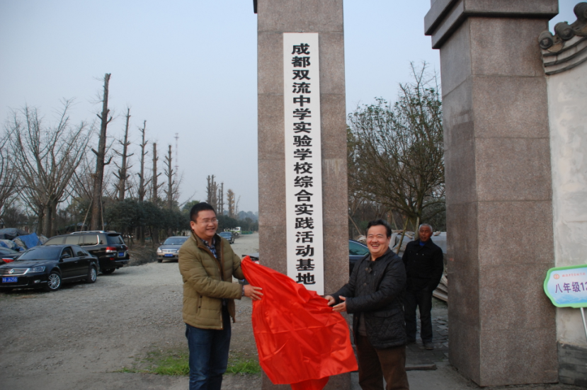 1230下午,双流中学实验学校综合实践活动彭镇种植基地现场揭牌仪式隆重举行。学校组织八年级各班种植小组组长及所有带队老师、指导教师参加仪式。双流县彭镇镇长宋晓东、彭镇人大副主任卢鸿、双流县教育局刘由远科长、金湾村党支部书记罗成祥、学校董事长陈廷富、学校校长高志文、副校长张润林、副校长王伟及教务处主任周宗友出席揭牌仪式。