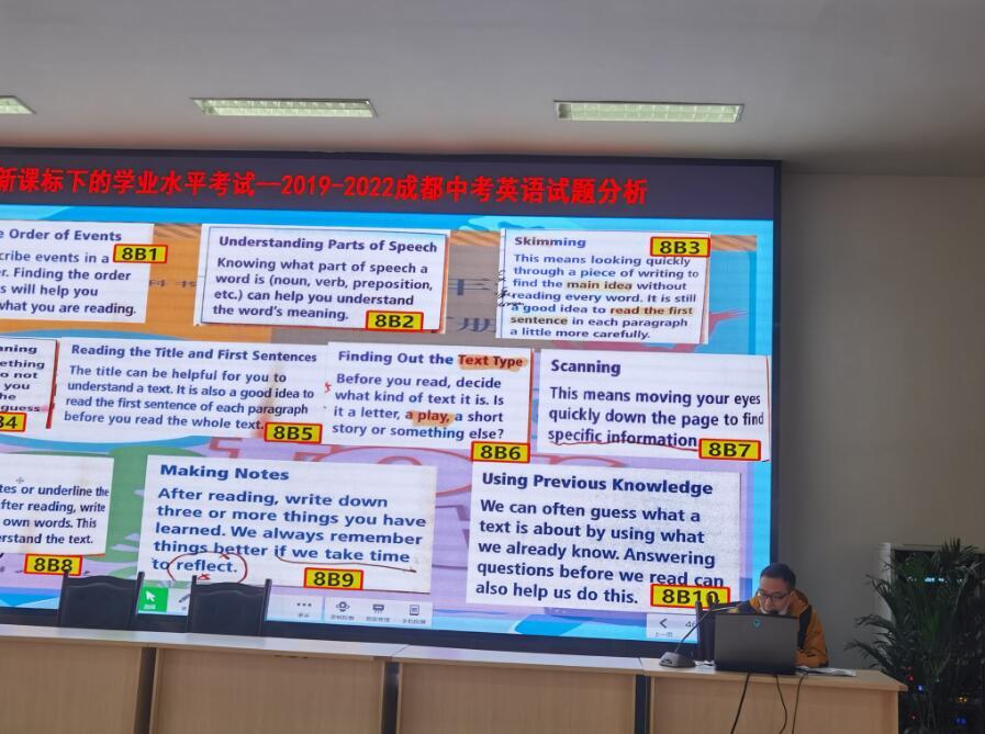 2月28日上午,英语组全体老师在学术厅参加了教研组会,认真听取了初2023届英语备课组对2019-2022年成都中考英语试题的分析和解读。杨主席和李主任莅临会议。