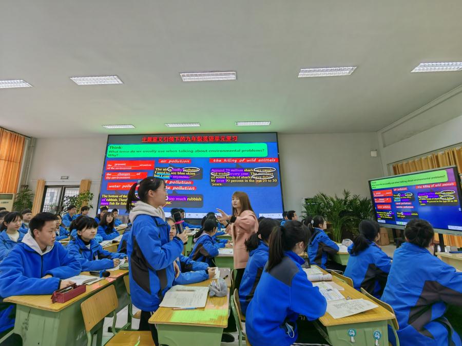 3月7日,双流区九年级英语中考迎考研讨会在我校举行。会议主题是“主题意义引领下的九年级单元复习”。会议主要分为四个部分。首先陈琦老师上了一节九年级13单元的单元复习课,U13 We are trying to save the earth! 这节课属于英语新课标主题范畴“人与自然”下的子主题“ 环境污染及原因,环保意识和行为”。这个单元的语言知识内容较综合,教师需带领学生对学过的时态和句型结构进行复习,学生需能正确运用和环保话题相关的词汇和常用表达完成任务,通过了解环境污染情况和成因,知道如何保护环境并内化形成自觉的行为。在这节课中,陈琦老师通过创设情景,运用思维导图引导学生将关于“环保话题”的碎片化知识转化成具有一条逻辑主线的知识结构(即 problems-causes-solutions),同时复习强化该单元的重点知识和重点语法的结构和功能,并结合热点问题Upcycling的延伸阅读文章,加深学生对“环保话题”的深度学习,在对课本知识、词汇拓展的同时,提高了学生的英语思维能力;最后通过制定家庭日常生活的碳减排计划,进行语言的输出活动,体现了此课的育人价值。