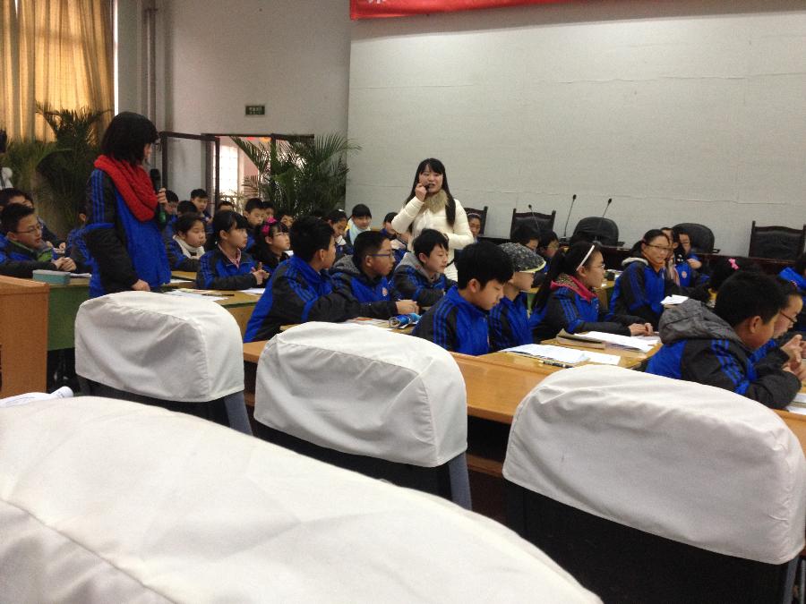 1月15日上午第三节课,高校长带领行政人员和“班小图书馆建设及学生全员阅读”课题组所有指导教师,现场观摩了语文组付丽莎老师展示的一堂精彩的阅读指导课。