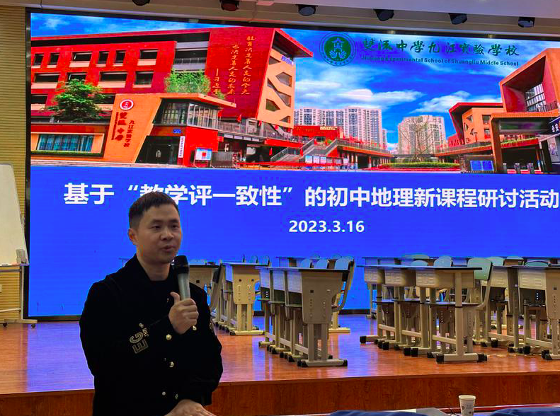 2023年3月16日下午,双流区“基于教学评一致性下的初中地理新课程研讨活动”在万科实验学校隆重举行。本次活动由双流区地理教研员刘冕老师主持,来自全区五十多位地理老师参与了本次活动。