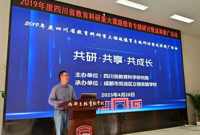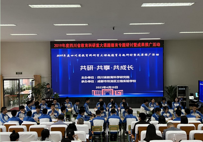 2019年四川教育科研重大课题德育专题研讨暨成果推广会于2023年4月28日在我校举行。本次活动由四川省教育科学研究院主办,我校负责承办,高中部学生发展中心课题组组长赵鹏飞老师主持。