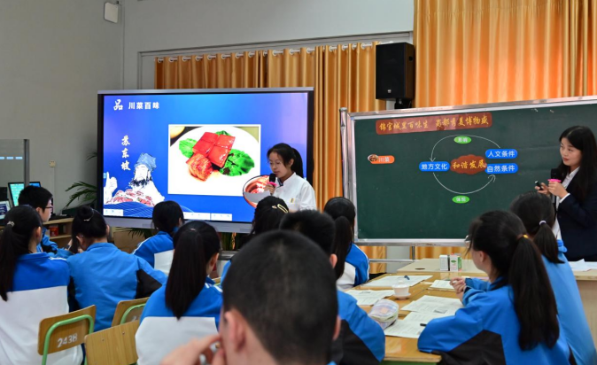 地理组刘英老师以《锦官城里百味生,蜀都秀美博物盛》为主题的健全人格学科课,带领着学生体验和探究了成都地方文化特色。