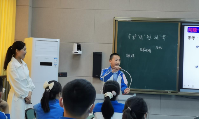 王春艳老师展示的以《守护“睛”彩“视”界》为主题的健全人格学科课。通过新闻和相关文件,结合学生采访校医和眼科医生的相关数据,增强学生科学探究意识和理性认知的科学思维以及严谨治学、求实创新的科学态度。