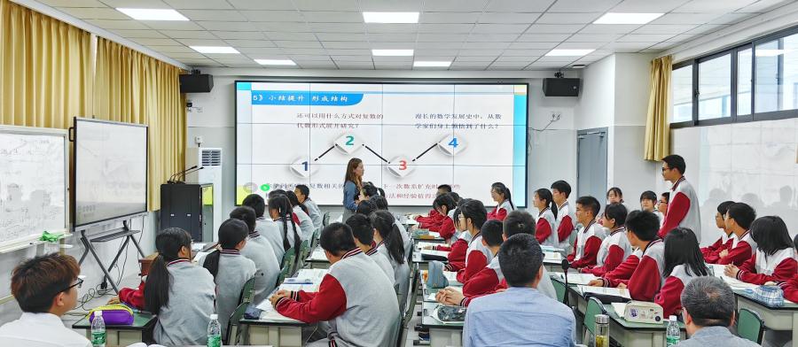成都树德中学光华校区刘臆老师执教《数系的扩充和复数的概念》。刘老师通过课前互动,从漫漫的数学史谈起,分步推进,问题驱动、小组合作、例题巩固、总结提升、作业设计,每一步的课堂设置无不体现出刘老师的精心设计。