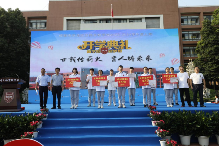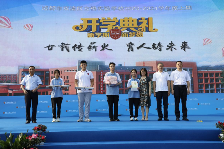 少年当有凌云志,万里长空竞风流。立格学子始终不惧艰难,逐梦前行,用辛勤付出收获累累硕果。罗晓章副校长宣读上学期初中、高中奖学金获奖同学名单。学校领导为获奖同学颁奖。