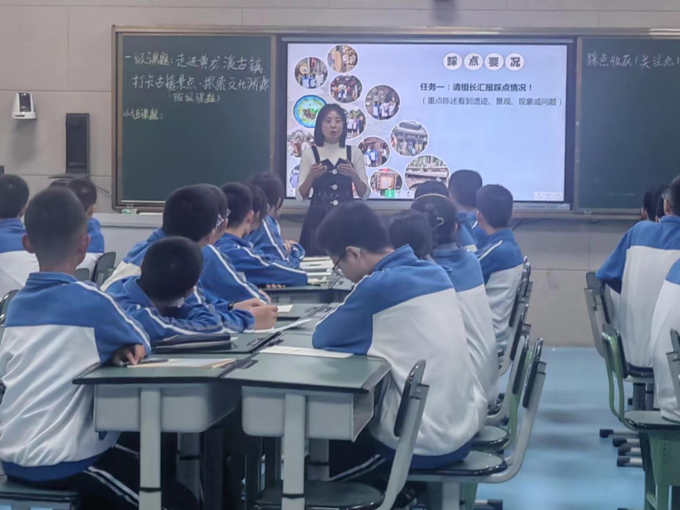 经过认真思考,晋云萍老师以“打卡古镇景点 探索文化渊源”作为选题指导课课题,在“自主、合作、探究”理念指引下,指导学生进行科学进行课题研究。晋老师设定探究的任务群,从组长汇报踩点情况到对组长关注点进行分类,再到聚焦二级子课题,确定小组研究方向、小组课题名称,最后到规划实地考察的事宜,为学生构建了课题探究的科学流程,同时,又充分体现小组合作探究,学生相互质询、答辩,课堂探究氛围浓烈,学生探究兴趣浓厚;在学生探究课题出现偏差,探究方向偏离时,教师又能及时给予帮助和纠正,课题探究活动始终在高质有效中进行,培养了学生科学创新素养和能力,取得了较为理想的探究效果。