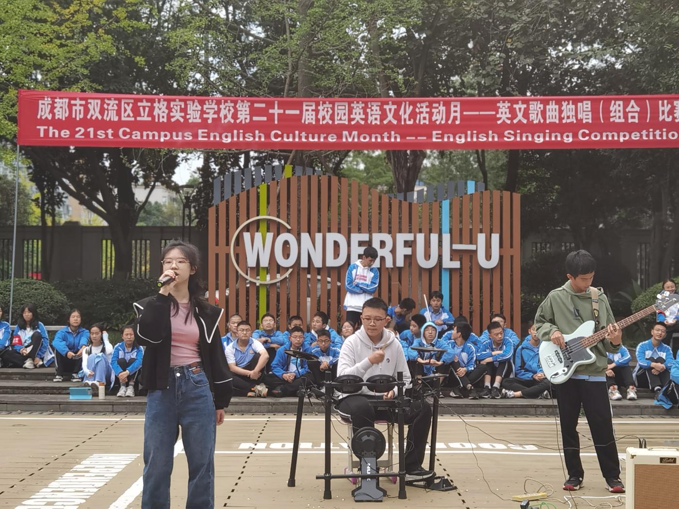 2023年10月19日下午,英语活动月之九年级英语独唱(组合)比赛在英语角小广场举行。本次活动吸引了许多老师和同学现场观看,气氛非常热烈。本次比赛的评委是来自九年级的四名英语老师和外教老师,他们分别根据各班选手的演唱技巧、着装、整体效果等打分。