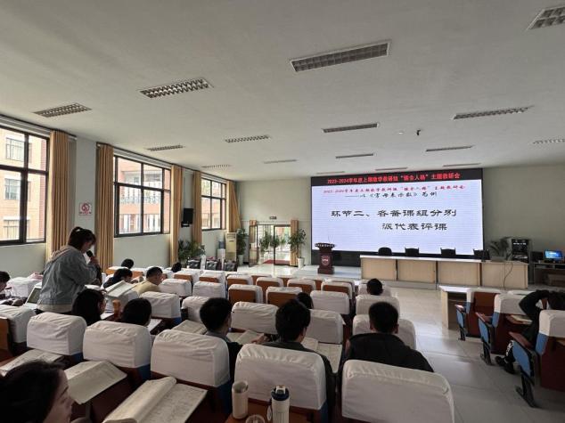 课后,教研组组织了说课和评课。罗老师阐述了本节课教学目标、教学重难点、学情以及教学的七个环节,通过教学渗透人格品质,让学生能够用数学的眼光观察世界,用数学的思维思考世界,用数学的语言表达世界,培养学生数学核心素养和勇于探索、表达的自信心。并结合学校健全人格课题,接着向大家介绍了本节课渗透的健全人格核心要素:存在与规律,已知与未知,现象与本质。