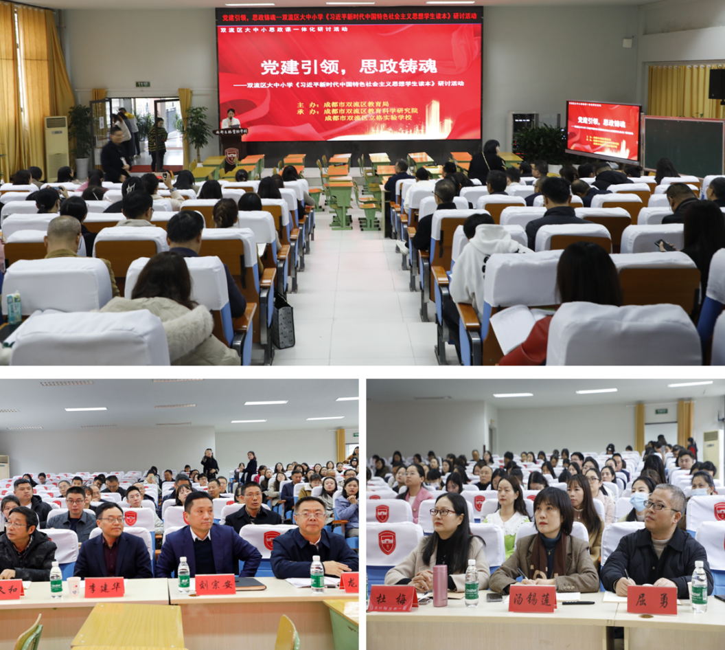 为帮助我区中小学思政课教师充分认识使用《习近平新时代中国特色社会主义思想学生读本》的重要意义,深入理解《习近平新时代中国特色社会主义思想学生读本》编写意图和价值导向,准确把握“读本”内容体系和教学重点,切实落实好用习近平新时代中国特色社会主义思想铸魂育人的要求。2023年11月24日,双流区大中小学《习近平新时代中国特色社会主义思想学生读本》研讨活动在成都市双流区立格实验学校隆重举行。本次活动由成都市双流区教育局主办,由成都市双流区教育科学研究院、中共成都市双流区立格实验学校委员会承办。四川大学马克思主义学院副院长李建华、双流区教育局党组成员、副局长刘宗安、双流区教育科学研究院党总支书记李久和、双流区立格实验学校校长龙清明、小学教研员屈勇、初中政治教研员汤锡莲、高中政治教研员杜梅及双流区各学校党组织专职副书记、思政教育专家、教师共100余人参加了本次活动。