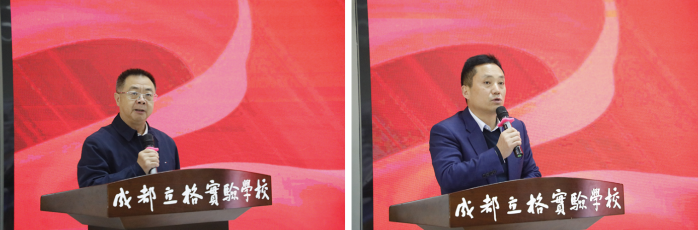 在研讨伊始,双流区立格实验学校龙清明校长向各位嘉宾致以热烈的欢迎和诚挚的感谢。他表示,“同舟共济,中国智慧”,这一主题鲜明地展现了我国在全球视野下的责任担当和为民情怀。期待与各位专家、老师共同探讨思政课教育教学中的热点问题,分享优秀经验,携手推动双流区大中小学思政课教育一体化发展。双流区教育局党组成员、副局长刘宗安在发表讲话中,指出双流区系统化落实《习近平新时代中国特色社会主义思想学生读本》,一体化推进大中小学思政课的发展工作,他指出思想政治教育是综合、系统的工作,大中小学思政课一体化建设十分必要。他首先肯定了双流区中小学思想政治教育工作所取得的成绩,同时指出作为立德树人的关键课程中的关键是狠抓思政课教师队伍建设,未来三年,双流区教育局将配齐配足培强这支最核心最骨干的思政课教师队伍力量,让每一位思政教师理直气壮地上好思政课,让习近平新时代中国特色社会主义思想进课堂、进头脑。引导学生在学思践悟中坚定理想信念,在奋发有为中践行初心使命,不断增强历史定力、锤炼历史思维。
