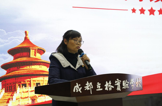 德育处王敏蓉主任给青年同志们带来了寄语:努力“为中华之崛起而读书”, “为中华民族的伟大复兴而读书”!并在成都立格实验学校这一个成才的摇篮中去成长自己去锻炼才干、全面发展、发展个性、健全人格,成为时代和祖国所需要的人才